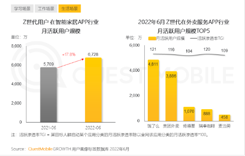 據調查報告顯示,Z世代用戶在智能家居APP行業月活躍規模相比去年增長17.8%。愈加智能化的家電家居節省家務時間,備受當代年輕人青睞。
