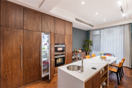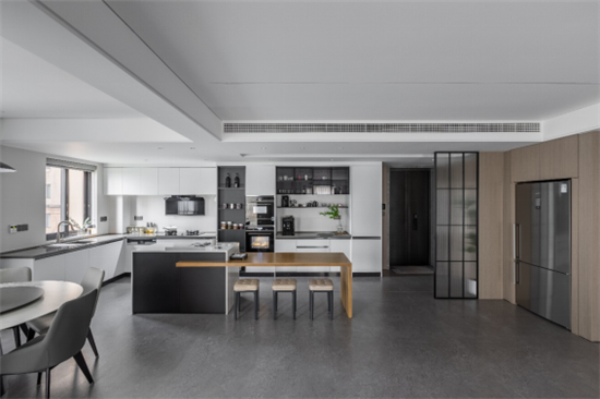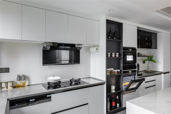 如果說客廳是一個家鮮亮的面子,那么廚房則是美好的里子。新時代下,廚房早已不再是傳統印象中單一的烹飪空間,而是被賦予了社交、溝通、娛樂等更多價值,因此開放式廚房深受年輕人的追捧。通過將廚房形態與體驗進行顛覆式的革新升級,通透明亮的開放式廚房不僅僅只具備燒飯的功能屬性,同時也承載了與家人在一起的悠閑幸福時光。但同時,油煙味重不易清潔、存儲空間有限、噪音大等問題,也讓很多消費者望而卻步。