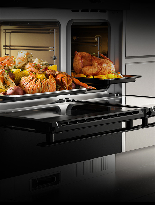 億田蒸烤獨立集成灶采用48L蒸箱+26L烤箱獨立腔體,不僅功能上完全實現1+1>2,而且無論是價格上還是占用空間上,都遠勝于單一的蒸箱/烤箱。最關鍵的是,億田內置蒸汽鎖鮮燉、3D均溫烤、健康空氣炸,智慧集成,煙灶蒸烤煎炸燉全能,隨時暢享一平米的大廚手藝。Are You Ready?