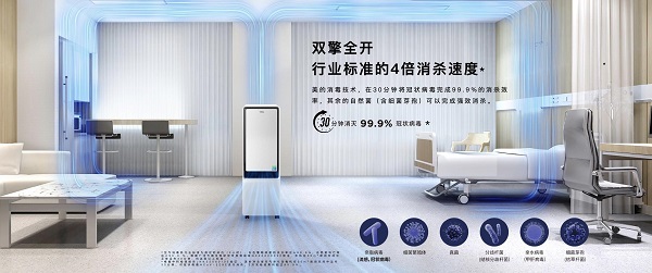在物表消毒方面,美的凈擊者空氣凈化消毒機搭載次氯清消殺因子技術(shù)。次氯清消殺因子可隨風(fēng)附著于物表,進入病毒和細菌細胞的內(nèi)部,快速分解DNA并破壞細胞活性,從而高效滅殺物表細菌病毒。
