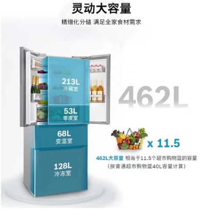 462L大容量空間設計,囤滿11.5個購物籃的幸福感