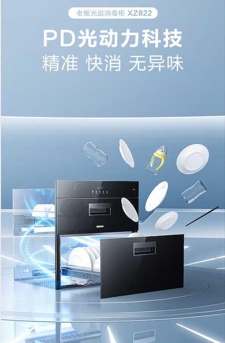 針對(duì)這個(gè)問題,老板光巡消毒柜XZ822給出了完美的答卷:搭載360°渦旋速烘技術(shù),紅外線加熱配合頂置風(fēng)機(jī)內(nèi)循環(huán)工作,有效加速烘干進(jìn)程,配合PD光動(dòng)力在60min內(nèi)即可完成消烘全流程,相比傳統(tǒng)消毒柜殺菌速度提升2.16倍,再也不用擔(dān)心消毒時(shí)漫長的等待。