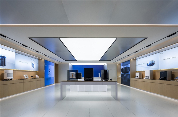 另一方面的亮點來自于精心設計的消費者動線,以“看,逛,停,坐,思,行”,引導消費者入店并在無意識中體驗完設定的路線:門店入口兩側的動態產品演示抓住眼球,消費者產生興趣后步入門店;主推位上集中陳列的明星產品,可圍繞走動并觀看;移步產品體驗區,停下步伐,觀看科沃斯產品的演示,形成深入了解的欲望;坐下來與店員進行溝通,通過場景區的展示聯想到家庭使用場景,直擊消費者日常生活的需求,最終產生購買行為。這一個個的細節,決定了視覺觸覺上的沉浸體驗,以及交互過程中的舒適感。
