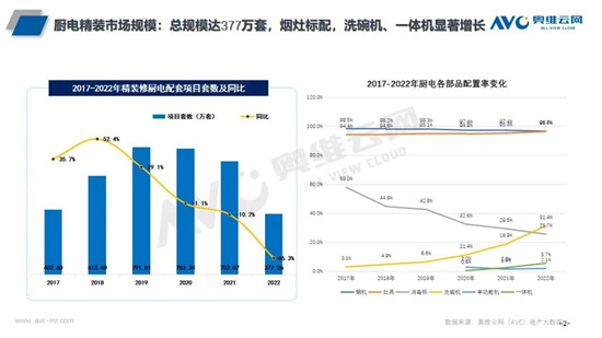 奧維云網(AVC)《2022年中國房地產商品住宅精裝修市場廚電年報》總結精裝修市場廚電產品呈現以下特征: