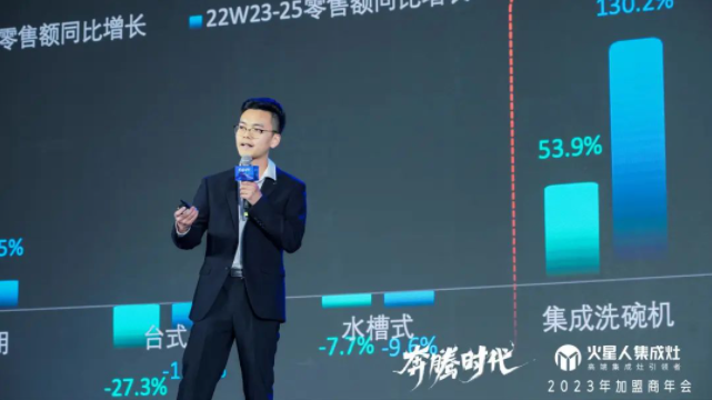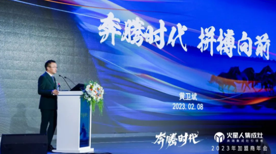 會議伊始,火星人廚具股份有限公司董事長黃衛斌向到場的嘉賓們表示感謝并發表致辭,“開局就是決戰、起步就要沖刺。今天是開年第一會,在這個千人會場里,我們要把目光聚焦一個主題,就是增長。把C位留一個群體,就是廣大全國加盟商朋友,把行動統一到一個目標,就是搶回失去的三年!新的一年,疫情影響逐步消退,經濟形勢逐漸向好,我們要搶抓機遇謀發展,凝心聚力求突破,全力以赴跑出加速度、闖出新天地、干出新精彩!”
