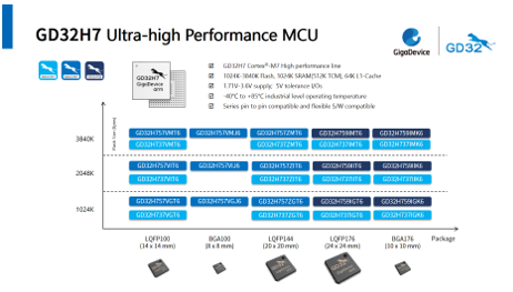 GD32H7系列MCU具備卓越的處理能效、豐富連接特性及多重安全機制,以先進工藝制程和優(yōu)化的成本控制,全面釋放高級應(yīng)用的創(chuàng)新潛力。全新產(chǎn)品組合包括3個系列共27個型號,提供176腳和100腳BGA封裝,176腳、144腳和100腳LQFP封裝等五種選擇,將于5月底陸續(xù)開放樣片和開發(fā)板卡申請,10月起正式量產(chǎn)供貨。