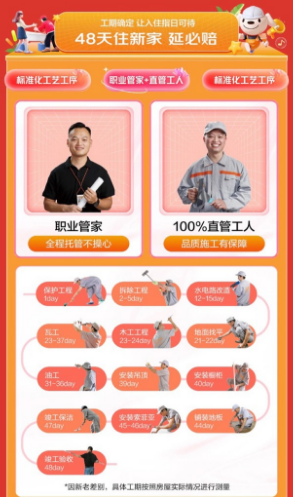 而京東裝修自營業務能將消費者困擾的裝修問題全都化解,輕松實現一站式省心裝修。首先,京東裝修自營業務包含了房屋前期排雷量房,滿足消費者需求的全案設計,自有產業工人全程品質施工,大牌建材品牌直供,還有淋浴、馬桶、浴室柜全部齊全的整裝衛生間,以及櫥柜、煙機灶具一應俱全的整體廚房。方案中更是將定制家具納入其中,標配了15平米(投影面積)索菲亞定制空間,含臥室衣柜,門廳玄關柜、書房的書柜與書桌等產品。京東還為消費者配備了家電4件套,消費者只需適配床、沙發、餐桌、窗簾等軟裝,即可實現拎包入住。