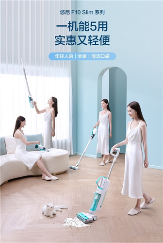 而悠尼F10是悠尼首款“出圈”產品,作為去年618“洗地機自由計劃”的主角,率先打破了洗地機價格高的固有印象,讓年輕人看到了悠尼的實力與誠意。在清新時尚的外觀之下,悠尼F10擁有完備的吸拖洗與一鍵自清潔功能,自牽引力的加持讓產品更加物有所值。3.35kg的超輕機身,讓整體更輕盈,女生單手提拿也毫不費力,特別適合追求顏值與性價比的單身貴族。