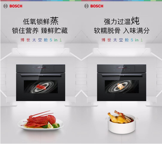除擁有五合一多重烹飪功能外,博世太空艙五合一蒸烤一體機還將科技創新融入產品功能細節中。新品搭載40項智能菜譜,同時搭配三層大容量設計,一步到位,為消費者打造更智慧高效的下廚體驗。