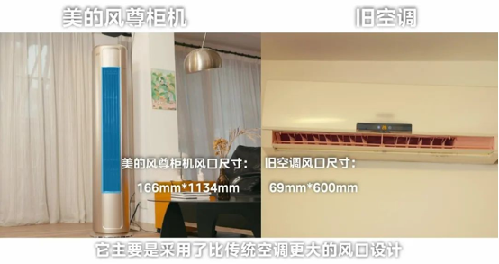 原因也很簡單:首先,美的風尊柜機空調擁有7290W額定制冷量,遠大于舊空調3500W額定制冷量,更適合大客廳。