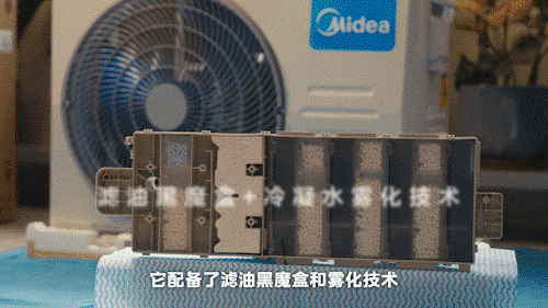 此外,考慮到廚房油煙問題,它的外機同樣與常規掛機空調不同,配置了濾油黑魔盒和霧化技術,可以過濾凈化冷凝水中的油脂和有機酸后將其霧化,保證外機不滴水,所以它的外機裝在哪里都行。