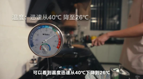 安裝廚房空調當然首先就是要給廚房降溫,所以我們首先測試了美的「廚清涼」吸頂式廚房空調的制冷效果。