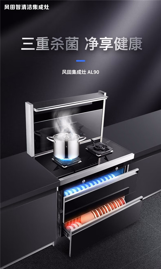 除了消毒柜以外,風(fēng)田AL90作為集成灶還搭載了強(qiáng)大的煙灶功能。