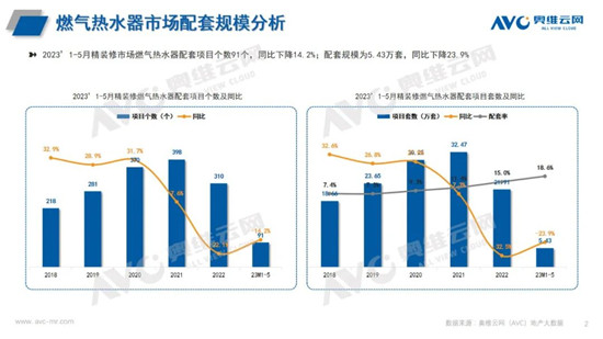 另外,太陽能熱水器和電熱水器近年來配套規模及配置率均較低,市場發展潛力較弱,據奧維云網(AVC)地產大數據監測:2023年1-5月精裝修市場太陽能熱水器、電熱水器配套規模均不足上萬套,配置率分別為3.4%、0.8%,尤其是電熱水器,逐步被其他類型熱水器產品所取代。戳→奧維數據羅盤