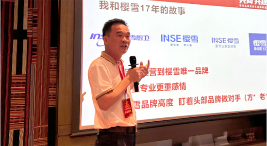 李總自我介紹:他是櫻雪17年的全天候戰略合作伙伴。從多品牌經營到櫻雪唯一品牌運營,定位櫻雪品牌高度,只盯著頭部品牌做對手。