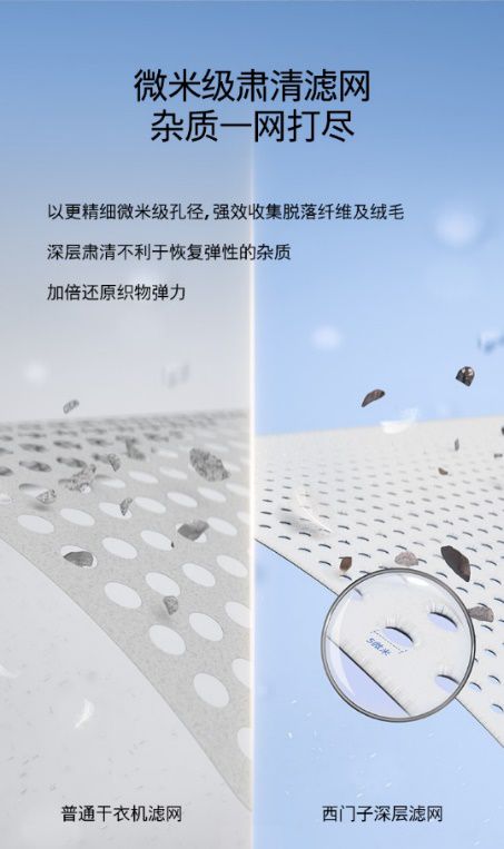 基于此,西門子家電進一步專研智能新科技,推出西門子T27纖護系列干衣機,從衣物接觸的源頭減輕易敏人群的煩惱。該款干衣機搭載“深層清潔”技術,通過獨創的纖維級毛絮過濾系統,能夠肅清細微到5微米不可視的雜質,高效攔截藏在衣物中的浮灰、塵螨和毛發,實現99.3%塵螨攔截率、99.2%寵物毛攔截率、98.3%花粉攔截率,2從而達到貼身衣物深層清潔、呵護肌膚健康的效果。