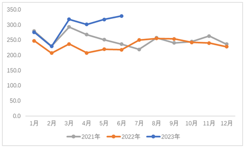 當月:2023年6月,我國家用洗衣機行業總產量623.7萬臺,同比增長19.9%;總銷量633.2萬臺,同比增長21%。其中內銷出貨量303.8萬臺,同比下降0.5%。出口出貨量329.4萬臺,同比增長51.2%。