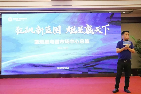 隨后,他對藍炬星集成灶品牌實力、產品特色、市場運營以及科技創新實力等方面的強大優勢都作出了詳細介紹。