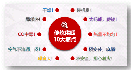 據業內專家透露:近年來,隨著“厄爾尼諾現象”與“拉尼娜現象”頻發,很多地區出現了“夏天極熱,冬天極寒”的情況。我國黃河以南大面積區域,冬天極度缺乏供暖。目前,市面上主流的:烤火爐、小太陽、暖風機、油汀、空調、空氣能等取暖設備,存在諸多痛點: