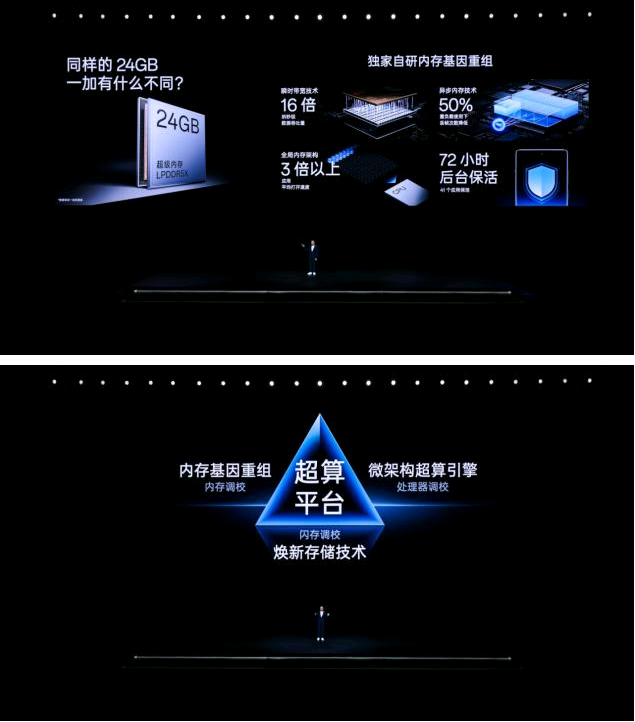 硬件是性能表現的基礎。一加Ace 2 Pro搭載第二代驍龍8移動平臺+LPDDR5X+UFS 4.0的旗艦性能組合,硬件配置全面拉滿。一加Ace 2 Pro繼續堅持“大內存引領者”思路,進一步突破行業內存上限,帶來12GB+256GB起步,至高24GB+1TB的配置,成為行業內首部大規模量產的24GB手機。