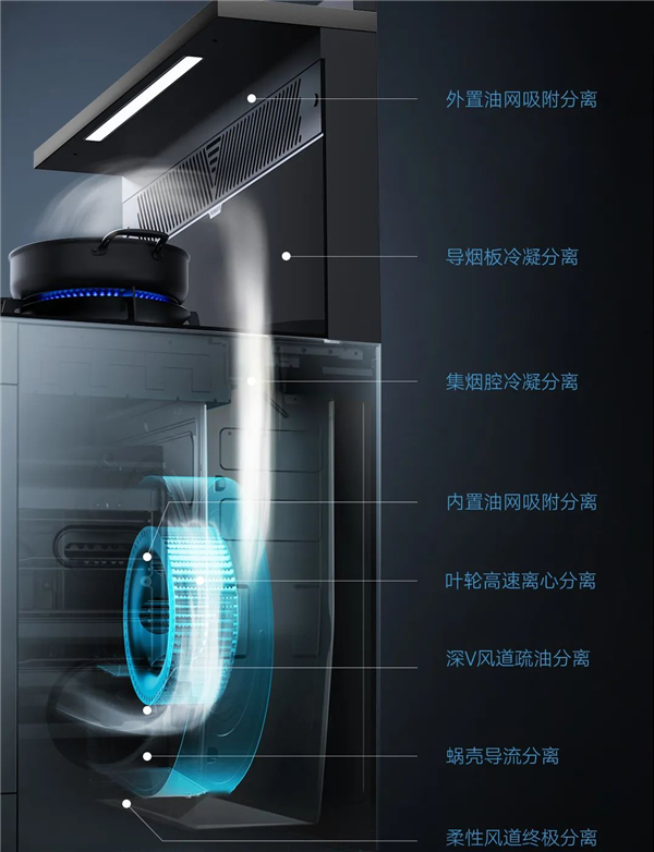 除了提高廚房吸排能力,打造長(zhǎng)效無(wú)煙廚房是基本目標(biāo)。培恩M5集成灶在運(yùn)行中采用8重油煙分離,油脂經(jīng)過層層分離,既做到油煙高效極致的分離,凈化廚房空氣;也減少煙機(jī)內(nèi)部的油煙積垢,延長(zhǎng)集成灶的使用壽命。