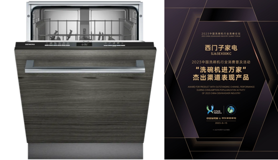西門子洗碗機(jī)SJ63EX00KC榮獲“2023中國(guó)洗碗機(jī)行業(yè)消費(fèi)普及活動(dòng)‘洗碗機(jī)進(jìn)萬(wàn)家’杰出渠道表現(xiàn)產(chǎn)品”
