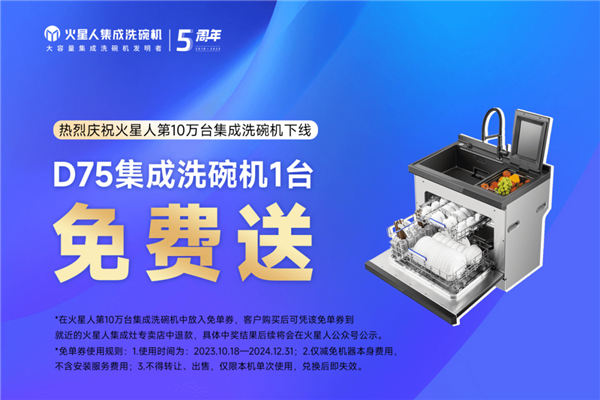 此次下線的第10萬臺集成洗碗機(jī),是集多項(xiàng)行業(yè)領(lǐng)先優(yōu)勢,2023年度旗艦新品的D75。作為火星人開創(chuàng)集成洗碗機(jī)品類的5周年誠意之作,D75顛覆性地將果蔬凈化、碎渣除渣、餐具洗烘、抑菌存儲、水槽凈洗五大系統(tǒng)集于一體,其果蔬機(jī)搭載的微納米空化凈洗技術(shù)達(dá)到“國際領(lǐng)先水平”*,去農(nóng)殘率最高達(dá)98.8%*,遠(yuǎn)超傳統(tǒng)果蔬機(jī)。此外,D75搭載火星人專利*第三代殘?jiān)幚砑夹g(shù),能極大簡化傳統(tǒng)洗碗機(jī)洗前復(fù)雜的預(yù)處理步驟,輕松粉碎小軟骨魚刺,真正做到解放雙手。