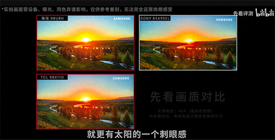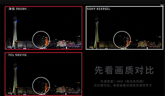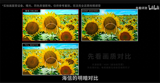 不過就在最近,本人關注的B站知名數碼博主“先看測評”發布了一則視頻,視頻選取了市面上三款主流旗艦機海信電視U8H、TCL X11G、SONY X955L進行了一次全方位的畫質對比測評。