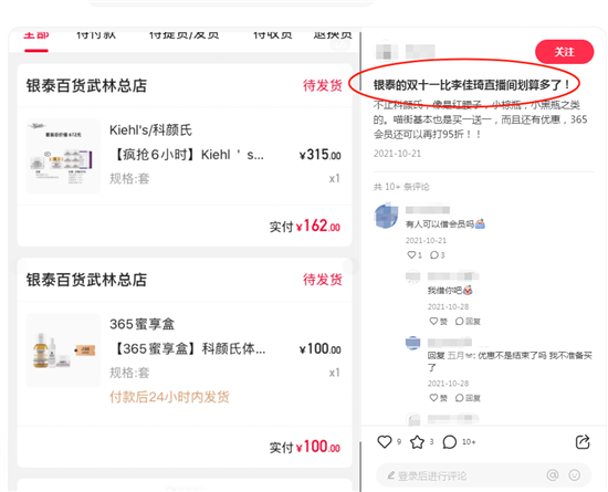 李佳琦的壟斷史最早始于銀泰嬌蘭事件。在2021年,有網友發雙11前發出購買攻略,表示銀泰的嬌蘭等產品,其線下活動比李佳琦直播間更劃算,并且不需要在直播間守候,也不需要搶購。