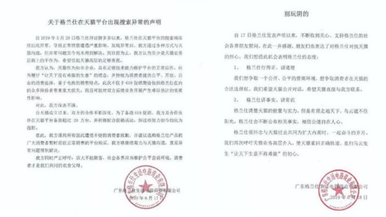 2019年,格蘭仕方面稱因為在拼多多開店,在淘寶被清退聚劃算、520大促資源,并被阻斷“618”相關流量。甚至在618前期,連格蘭仕相關品牌詞檢索也出現異常,導致最精準、轉化率最高的流量也被阻截。導致格蘭仕一怒之下發布了兩份聲明,直指阿里“玩陰的”。網友們首次直面阿里“二選一”這種霸道的商業模式,格蘭仕也走上了漫漫的維權路。