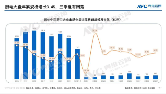 2023年Q3廚衛(wèi)品需品類(洗碗機(jī)、消毒柜、嵌入式微蒸烤、凈水器)整體延續(xù)了平穩(wěn)增長的態(tài)勢。據(jù)奧維云網(wǎng)(AVC)推總數(shù)據(jù)顯示,品需廚電前三季度累計(jì)零售額為285億元,同比增長6.3%;分季度來看,品需廚電Q1至Q3同比增速分別為-0.7%、9.6%、8.0%,看好Q4的增長。分品類看,洗碗機(jī)、消毒柜Q1至Q3逐季度上漲趨勢明顯,嵌入式微蒸烤、凈水器Q2高增長,Q3增幅放緩,整體增長強(qiáng)勁。
