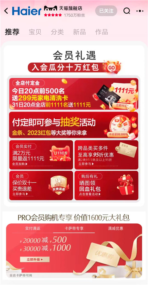其次,海爾的店鋪有自己獨(dú)立的優(yōu)惠活動。
