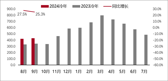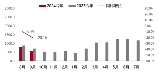 據產業在線監測顯示,2023年9月家用空調969.3萬臺,同比下降5.9%,銷售998.9萬臺,同比下降5.3%,其中內銷出貨568.1萬臺,同比下降20.1%,出口出貨430.8萬臺,同比增長25.3%。三季度內外銷市場出現較大反轉,內銷市場來看,終端市場遭遇斷崖式下滑后,當前需求處于弱復蘇狀態;海外市場來看,去庫存節奏趨緩,新訂單帶來持續性修復,低基數效應帶動下業績超預期發展。