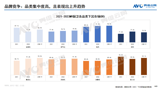 剛需廚電價(jià)格穩(wěn)步上行,燃?xì)庠钤龇琶谝?/strong> 除燃熱外剛需廚電下沉渠道價(jià)格穩(wěn)步上漲,其中燃?xì)庠顑r(jià)格漲幅在各品類中排名第一。據(jù)奧維云網(wǎng)(AVC)監(jiān)測(cè)數(shù)據(jù)顯示,2023年1-9月,燃?xì)庠钕鲁燎谰鶅r(jià)同比增長(zhǎng)16.7%,漲幅遠(yuǎn)高于其他品類。燃?xì)庠罴磳⒂瓉頁(yè)Q新周期,看好其下沉渠道增長(zhǎng)潛力。 品需廚電、集成灶在下沉渠道價(jià)格呈下降趨勢(shì),其中嵌入式均價(jià)降幅最大。據(jù)奧維云網(wǎng)(AVC)下沉渠道監(jiān)測(cè)數(shù)據(jù)顯示,2023年1-9月洗碗機(jī)、嵌入式、集成灶均價(jià)同比增速分別為-3.8%、-18.5%、-0.6%。對(duì)于下沉渠道消費(fèi)者而言,在追求新穎的同時(shí)也會(huì)追求性價(jià)比,而當(dāng)前品需廚電下沉渠道的價(jià)格雖然一定程度下降,但仍高于傳統(tǒng)電商渠道及其他廚電品類價(jià)格,未來價(jià)格或有望進(jìn)一步“下沉”。 搶占品牌“高地”:加強(qiáng)品牌營(yíng)銷,提升品牌影響力 相較于一、二線市場(chǎng),下沉市場(chǎng)消費(fèi)者對(duì)品類認(rèn)知偏弱,在選購(gòu)時(shí)也就更信賴和傾向于知名度更高、綜合實(shí)力或?qū)I(yè)實(shí)力更強(qiáng)、銷售鏈路服務(wù)更完善的品牌,因此廚衛(wèi)各品類的集中度處于較高水平,呈上升趨勢(shì)。當(dāng)前對(duì)下沉渠道的布局才剛剛開始,企業(yè)想要把握住下沉市場(chǎng)的紅利,首要的就是提高品牌的影響力,加強(qiáng)品牌營(yíng)銷和銷售鏈路服務(wù),從而提升品牌在下沉市場(chǎng)的競(jìng)爭(zhēng)力。 下沉市場(chǎng)TOP10地區(qū)以人口大省為主。據(jù)奧維云網(wǎng)(AVC)下沉監(jiān)測(cè)數(shù)據(jù)顯示,2023年1-9月煙、灶、電熱、燃熱規(guī)模TOP10區(qū)域中,江蘇、浙江、廣東、河南、山東、安徽、四川等地區(qū)高度重合,均為鄉(xiāng)村戶數(shù)排名靠前的區(qū)域。 廣東、福建等地品需廚電占比增長(zhǎng)明顯。據(jù)奧維云網(wǎng)(AVC)下沉監(jiān)測(cè)數(shù)據(jù)顯示,2023年1-9月,廣東省洗碗機(jī)、消毒柜、嵌入式占比分別較上年同期增長(zhǎng)6.0、0.6、6.3個(gè)百分點(diǎn);福建省洗碗機(jī)、嵌入式占比較上年同期增長(zhǎng)3.1、1.1個(gè)百分點(diǎn)。企業(yè)可加強(qiáng)布局占比上升明顯的地區(qū)。 【潮流家電網(wǎng)版權(quán)聲明】:本網(wǎng)站注明轉(zhuǎn)載的內(nèi)容均來源于互聯(lián)網(wǎng),轉(zhuǎn)載的目的在于傳遞更多信息及用于網(wǎng)絡(luò)分享,并不代表本站贊同其觀點(diǎn)和對(duì)其真實(shí)性負(fù)責(zé),也不構(gòu)成任何其他建議。如果您發(fā)現(xiàn)網(wǎng)站上有侵犯您的知識(shí)產(chǎn)權(quán)的作品,歡迎提供相關(guān)證據(jù),發(fā)送郵件至731801816@qq.com,我們會(huì)及時(shí)修改或刪除。