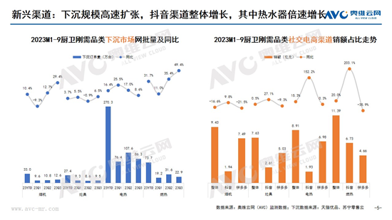 最為典型的代表就是下沉渠道,據(jù)奧維云網(wǎng)下沉渠道監(jiān)測(cè)數(shù)據(jù)顯示,2023年1-9月,廚電套餐、油煙機(jī)、燃?xì)庠睢㈦姛帷⑷紵徜N額規(guī)模分別為銷額12.2億元、7.1億元、3.0億元、23.8億元、11.7億元,分別同比增長(zhǎng)58.1%、11.0%、21.0%、18.1%、30.0%。相比于線上渠道以及傳統(tǒng)的線下專賣店、建材等渠道,下沉渠道展現(xiàn)出了強(qiáng)勢(shì)的增長(zhǎng)態(tài)勢(shì)。所以下沉渠道成為近兩年廚電企業(yè)兵家必爭(zhēng)之地。