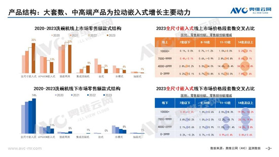 產(chǎn)品結(jié)構(gòu) 洗碗機(jī)內(nèi)部細(xì)分款式間的互補(bǔ)與分化明顯,當(dāng)前嵌入式仍是主流款式,份額占比持續(xù)增長(zhǎng)。根據(jù)奧維云網(wǎng)(AVC)監(jiān)測(cè)數(shù)據(jù),2023年,全尺寸嵌入式洗碗機(jī)線上、線下零售額占比分別為35%、74%,均較上年同期上漲5個(gè)百分點(diǎn)。主要由于14套以上大容量產(chǎn)品的拉動(dòng),其中14套以上中高端價(jià)格段的拉動(dòng)更加明顯。從品牌端來(lái)看,許多品牌都對(duì)產(chǎn)品容量進(jìn)行升級(jí);從消費(fèi)者來(lái)看,大容量嵌入式產(chǎn)品更具吸引力。 在健康品質(zhì)生活趨勢(shì)的推動(dòng)下,洗碗機(jī)產(chǎn)品主要圍繞“洗、消、烘、存”4個(gè)方向全面升級(jí),并且各品牌不斷尋求差異化賣點(diǎn)的突破,盡管技術(shù)不盡相同,但都是力求快速占領(lǐng)消費(fèi)者心智。除此之外,綠色智能、大容量等本土化升級(jí)也是技術(shù)升級(jí)的重點(diǎn)方向。 洗碗機(jī)作為新興品類,雖然近年來(lái)增長(zhǎng)迅速,但在中國(guó)的滲透率仍然遠(yuǎn)低于剛需品類,因此亟需通過(guò)“出圈”“破圈”迅速擴(kuò)大市場(chǎng)認(rèn)知。由于洗碗機(jī)消費(fèi)人群主要是一二線城市追求高品質(zhì)生活的年輕中產(chǎn),因此各大品牌加快面向年輕群體精準(zhǔn)營(yíng)銷,一方面通過(guò)流量明星代言、大V視頻科普等多種形式“破圈”吸粉、強(qiáng)勢(shì)引流,塑造新的品牌認(rèn)知。另一方面通過(guò)植入生活類、體驗(yàn)類電視網(wǎng)絡(luò)真人秀,洗碗機(jī)正逐漸成為熱門話題和流行趨勢(shì)。 產(chǎn)品結(jié)構(gòu) 嵌入式仍為主流款式,但雙線份額均有所下降。根據(jù)奧維云網(wǎng)(AVC)監(jiān)測(cè)數(shù)據(jù),2023年嵌入式消毒柜線上、線下零售額占比分別為59%、84%,均較上年同期下降4個(gè)百分點(diǎn)。 立式消毒柜線上、線下呈增長(zhǎng)勢(shì)頭。根據(jù)奧維云網(wǎng)(AVC)監(jiān)測(cè)數(shù)據(jù),2023年立式消毒柜線上、線下零售額占比分別為37%、15%,較上年同期分別增長(zhǎng)3個(gè)、4個(gè)百分點(diǎn)。具體從價(jià)格段來(lái)看,主要是中高端價(jià)格段份額增長(zhǎng),拉動(dòng)立式消毒柜整體增長(zhǎng)。 此外,線上低端臥式消毒柜份額也開(kāi)始增長(zhǎng),主要面向小戶型人群和母嬰人群的臥式消毒柜的市場(chǎng)潛力也值得進(jìn)一步挖掘。 根據(jù)奧維云網(wǎng)(AVC)監(jiān)測(cè)數(shù)據(jù),2023年消毒柜線上排名前2的新品均是以母嬰為賣點(diǎn),且自上市以來(lái),零售規(guī)模持續(xù)上漲。對(duì)于消毒柜來(lái)說(shuō),專業(yè)消殺和存儲(chǔ)是其與洗碗機(jī)最大的區(qū)隔,而在在后疫情時(shí)代,流感頻發(fā)的情況下,母嬰人群由于免疫力相對(duì)較弱,對(duì)消毒柜的需求更為迫切。根據(jù)奧維云網(wǎng)火箭大數(shù)據(jù),小紅書(shū)消毒柜搜索關(guān)鍵詞最多的就是寶寶、奶瓶,母嬰細(xì)分市場(chǎng)的潛力不可小覷。 根據(jù)抖音發(fā)布的2024年風(fēng)向指南,洗碗機(jī)等懶人家電入選年輕人TOP電卷榜,期待洗碗機(jī)在24年實(shí)現(xiàn)爆發(fā)式增長(zhǎng)。根據(jù)奧維云網(wǎng)(AVC)預(yù)測(cè)數(shù)據(jù),2024年洗碗機(jī)整體規(guī)模215萬(wàn)臺(tái)、126億元,零售量同比增長(zhǎng)11.0%,零售額同比增長(zhǎng)12.2%,洗碗機(jī)將延續(xù)高增長(zhǎng)態(tài)勢(shì)。2024年消毒柜整體規(guī)模322萬(wàn)臺(tái)、30億元,零售量同比下降8.4%,零售額同比下降5.2%,消毒柜將延續(xù)下滑趨勢(shì)。 【潮流家電網(wǎng)版權(quán)聲明】:本網(wǎng)站注明轉(zhuǎn)載的內(nèi)容均來(lái)源于互聯(lián)網(wǎng),轉(zhuǎn)載的目的在于傳遞更多信息及用于網(wǎng)絡(luò)分享,并不代表本站贊同其觀點(diǎn)和對(duì)其真實(shí)性負(fù)責(zé),也不構(gòu)成任何其他建議。如果您發(fā)現(xiàn)網(wǎng)站上有侵犯您的知識(shí)產(chǎn)權(quán)的作品,歡迎提供相關(guān)證據(jù),發(fā)送郵件至731801816@qq.com,我們會(huì)及時(shí)修改或刪除。