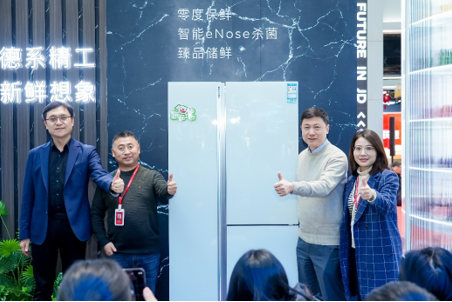 在全新西門子智感精控零度對開門冰箱亮相的高光時刻,雙方代表一齊按下創意揭幕裝置,揭開新品的神秘面紗,耀目的啟動儀式將現場氣氛推至高潮。隨后,西門子冰箱培訓專家還為觀眾準備了視聽結合的產品解讀,基于西門子家電零度鮮藏專利技術和智能eNose智感殺菌科技進行重點介紹。