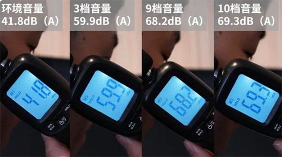 有變頻電機加持,培恩P7ZK的啟動噪音和運轉噪音也都有所減少。經實測,在環境噪音41.8dB(A)的情況下,培恩P7ZK最大10檔的噪音只有69.3dB(A),符合國標不高于72dB(A)的標準線。
