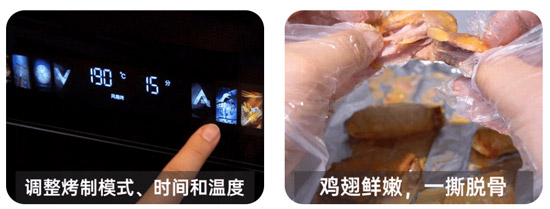 燒烤環節則準備了肉腸、肉串和雞翅燒烤拼盤,同樣擺滿整個烤盤,以此測試雙熱風加熱的均勻度。結果可見在雙風機和回型熱管的加持下,連邊角處的食材也都被充分上色,內膽加熱足夠均勻。