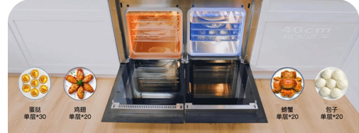 而且可以同時蒸螃蟹單層20只、包子單層20個、烤雞翅單層20個、蛋撻單層20個等,大大提升了烹飪效率,家有宴請也不慌張。