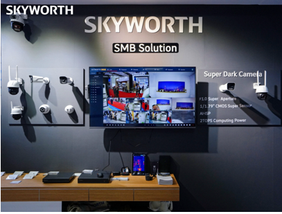 創維安防的標桿之作極黑光攝像頭,搭載“湃影”智慧影像處理系統,自帶2T澎湃算力,F1.0超大光圈,感光能力提升10倍,即使在無光環境中,依然能還原像白天一樣的彩色畫面,全面守護家庭、社區安全。創維展區在現場搭建了暗室,讓全球客商親身體驗出人意料的顯示效果。
