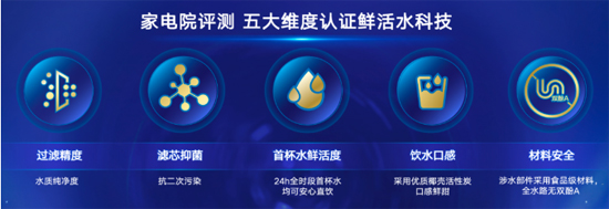 同時,鮮活水科技在“過濾精度、濾芯抑菌、首杯水鮮活度、飲水口感、材料安全”五大維度上的優異表現,也得到了家電院的高度認可。
