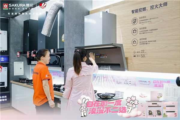 近日,SAKURA櫻花X不二兔聯名主題店正式登陸位于四川綿陽的家福來電器臨園口店,為這個充滿煙火氣的熱辣城市帶來了一陣清新、有格調、充滿智慧的新時代廚房風采。