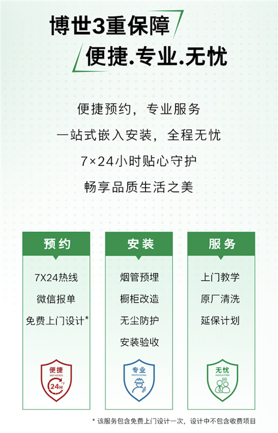 除優惠補貼、優質產品外,博世家電更以“3重保障”專業服務,為消費者家電換新全過程保駕護航——“3重保障”包含便捷預約、專業安裝和無憂服務,無論是免費上門設計、櫥柜改造或是上門使用教學,實現售前售中售后專業服務全覆蓋,讓消費者在家電換新過程中的每個環節都能獲得貼心的服務。