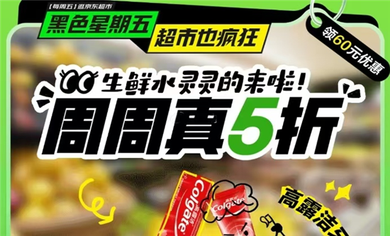 在7月,亞馬遜海外官方旗艦店入駐京東。不知道是不是受此影響,京東的黑色星期五在8月異軍突起,以超低價的雞蛋、可樂、抽紙等共計四款“剛需”快消品為噱頭,加上極其低價生鮮等特色產品,并且會發放3張有效期從周五晚到周日晚的200-20補貼,迎合用戶以黑色星期五為起點的周末采購需求。