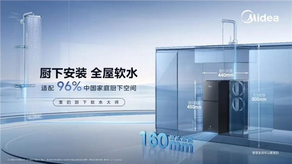 美的廚熱通過科技與時尚跨界,讓消費者追求時尚潮流設計的同時,更打破了大眾對傳統家電外觀普通/體積較大的認知,以及對創新科技產品產生了濃厚興趣。據了解,美的廚下軟水大師最大的特點,就是高顏值、小體積,其創新一體化集成水路設計,極大地縮小了軟水機的體積,整體體積僅為450*440*160mm³,高度相當于2臺平板,寬度僅為一臺手機長度,身型玲瓏小巧,不僅有效解決了傳統軟水機體積大、高度受限需要拆改廚柜的痛點,同時節省更多收納空間,堪稱小戶型家庭福音。該產品獲得了中國家用電器研究院的嘉電評測“超小體積96%廚下可安裝”權威認證,適配96%中國家庭廚下空間。