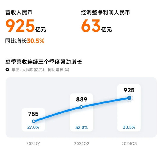 此外,財報還提到,小米智能手機業務的收入從2023年第三季度的416億元增長至2024年第三季度的475億元,增幅為13.9%,這主要得益于智能手機平均售價的提升和出貨量的增加。