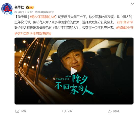圍繞傳統文化的傳承和價值深挖,華帝在春節前上線了《除夕不回家的人》這一催淚視頻。通過將鏡頭對準那些主動選擇除夕不回家的人,講述了不起眼的守護者們和他們的付出。視頻傳達的正能量和奉獻精神打動了萬千觀眾,視頻全網總播放量超900萬次,微博話題#除夕不回家的人#總閱讀量2億+,自然熱搜上榜2次,持續在榜3小時,全網總曝光量超過2.65億。新華社、北京日報等多家媒體點贊。