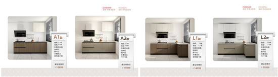 德意觀察到消費者除了面臨中國式舊廚房的“空間局促、利用率低、收納混亂、設備老化”等問題,還要面臨換新過程中的“預算不夠、進度拖沓、電器難選、櫥柜難定、保潔困難”等問題。“3天1個新廚房”針對中式舊廚房精心研創了煥新標準產品,采用了實用且大氣的一字型和L型作為基礎布局框架。每種布局分別開發兩種款式,均包含廚柜、臺面、煙機、灶具、水槽龍頭,覆蓋到全廚空間。