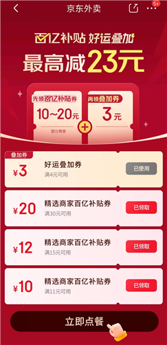 4月10日,京東外賣再次發力,宣布將于4月11日早8點正式上線百億補貼。美團迅速做出響應,追加補貼力度。兩大平臺的補貼大戰就此拉開帷幕,消費者們也在這場戰爭中享受到了實實在在的優惠。